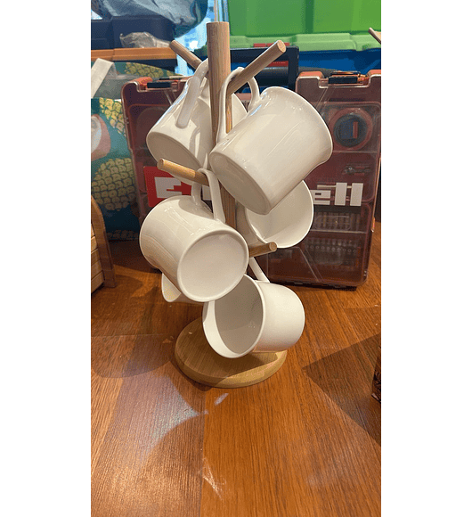 Set de 6 Tazas grandes cerámica con base de Bamboo