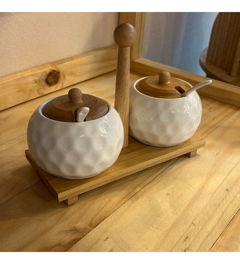 Set Contenedor 2 Pcs Cerámica Base Bamboo