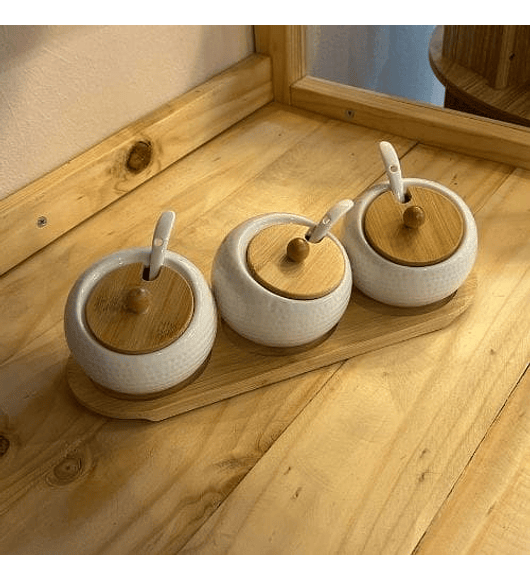 Set 3 Pcs Salsero con Base Bamboo