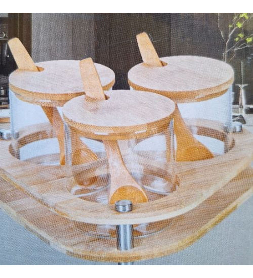 Set Contenedor 3 Pcs Ceramica Base Bamboo